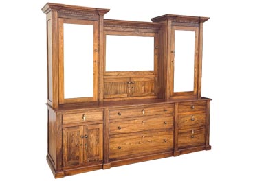 One of our popular models features a display case built into the base of the gun cabinet, which allows you to showcase your mounted ducks, quail or pheasants. Our Ultimate Gun Cabinet can be configured to either fully display your guns or as a TV and entertainment center with side pullout to conceal your guns. Just like our custom made furniture we can also do reproductions or we can replicate an antique cabinet to serve as a gun cabinet to accent your other fine furniture in your home. If your needs are a large custom gun cabinet or rack for your hunting lodge or shooting club, we will be glad to assist you with the design.