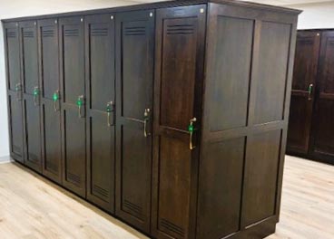 Amish Woodworking has also provided custom millwork for Country Clubs in the area with bars, bar stools, chairs, tables, fireplace mantels and cabinetry. Country Club Lockers usually need to fit into a specific space while satisfying the need to supply enough golfer lockers for members or guest. We can do single or double stack lockers with flush mount or insert doors. Just like our fine kitchen cabinets, you can have doors designed to fit your country club decor. We can also do reproductions to match existing lockers or we can replicate antique lockers to accent existing furniture in your club. If your need is for custom finished solid wood golfer locker for your home, we can provide you individual golfer lockers made of the finest hardwood with or without a finish or with just the right amount of distressing to match your specific needs.
