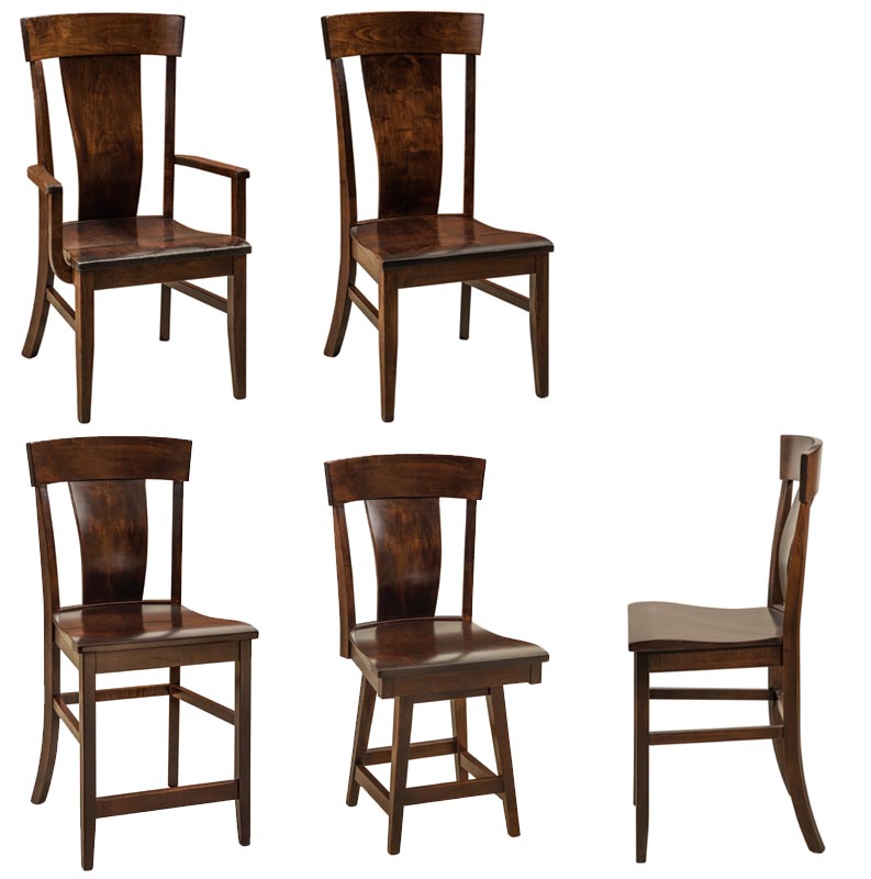- Chairs shown in Brown Maple with Distressed Asbury Stain