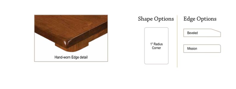 - Options: Shape: 1" Radius Corner, Edge: Beveled, Mission, Species: Cherry, QSWO, Brown Maple
