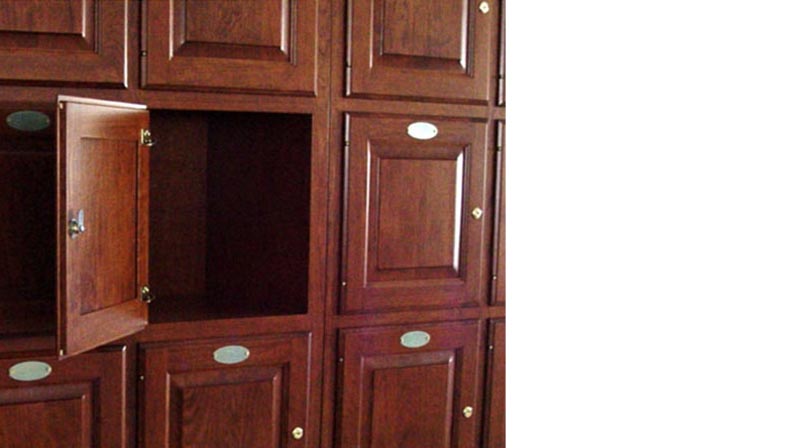 - Raised panel doors, brass name plates