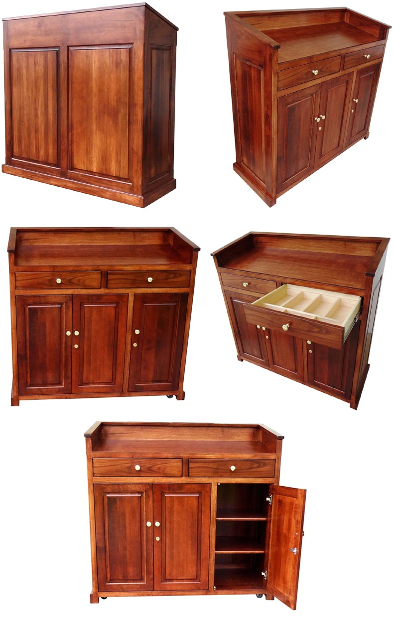 - Three (3) raised panel full inset doors on rear of podium with cam style security locks