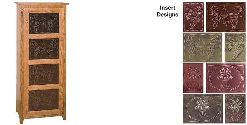 - Doors available with reverse raised panels, pie safe tins or leaded glass inserts