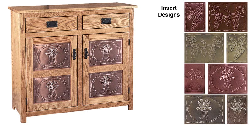 - Doors available with reverse raised panels, pie safe tins or leaded glass inserts