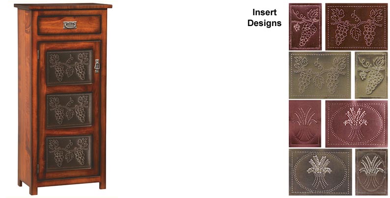 - Doors available with reverse raised panels, pie safe tins or leaded glass inserts