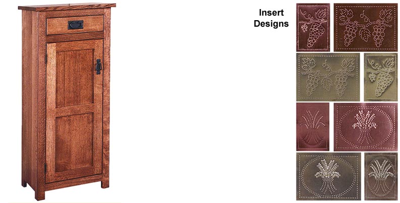 - Doors available with reverse raised panels, pie safe tins or leaded glass inserts