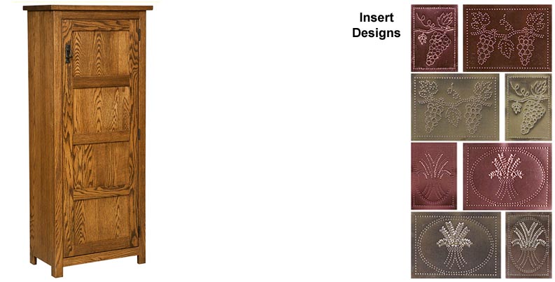 - Doors available with reverse raised panels, pie safe tins or leaded glass inserts