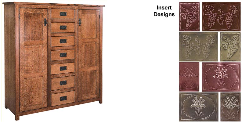 - Doors available with reverse raised panels, pie safe tins or leaded glass inserts