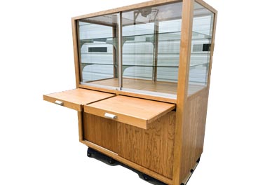 Amish Woodworking will build your Retail Display Cabinet to your specific requirements. You can configure the cabinet with angle shelving or glass shelving. Your display cabinet can also have door or drawers to provided additional storage.